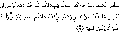 19. Hai Ahli Kitab, sesungguhnya telah datang kepada kamu Rasul Kami,