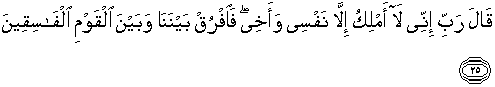 25. Berkata Musa: "Ya Tuhanku, aku tidak menguasai kecuali diriku sendiri dan saudaraku. Sebab itu pisahkanlah antara kami dengan orang-orang yang fasik itu."