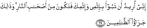 29. "Sesungguhnya aku ingin agar kamu kembali dengan (membawa) dosa (membunuh)ku dan dosamu sendiri, maka kamu akan menjadi penghuni neraka, dan yang demikian itulah pembalasan bagi orang-orang yang zalim."