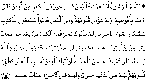 dengan cara yang tidak jujur. [416]. Maksudnya: mereka amat suka mendengar perkataan-perkataan pemimpin-pemimpin mereka yang bohong yang belum pernah bertemu dengan Nabi Muhammad s.a.w. karena sangat benci kepada beliau, atau amat suka mendengarkan perkataan-perkataan Nabi Muhammad s.a.w. untuk disampaikan secara tidak jujur kepada kawan-kawannya tersebut. [417]. Lihat no. [407].