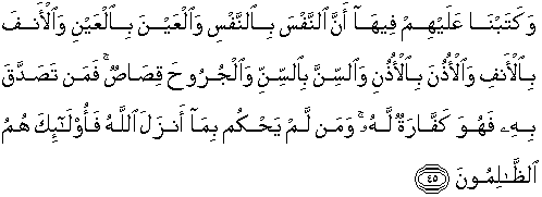 45. Dan Kami telah tetapkan terhadap mereka di dalamnya (At Taurat)