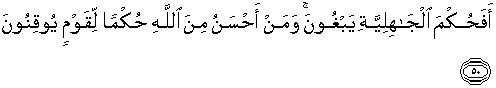 50. Apakah hukum Jahiliyah yang mereka kehendaki, dan (hukum) siapakah yang lebih baik daripada (hukum) Allah bagi orang-orang yang yakin ?
