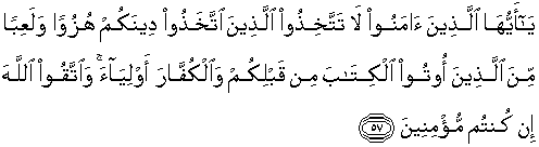 57. Hai orang-orang yang beriman, janganlah kamu mengambil jadi
