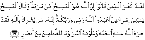 72. Sesungguhnya telah kafirlah orang-orang yang berkata: "Sesungguhnya