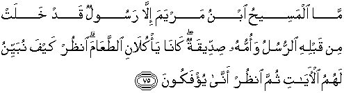 75. Al Masih putera Maryam itu hanyalah seorang Rasul yang sesungguhnya