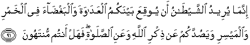 91. Sesungguhnya syaitan itu bermaksud hendak menimbulkan permusuhan