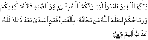 94. Hai orang-orang yang beriman, sesungguhnya Allah akan menguji kamu