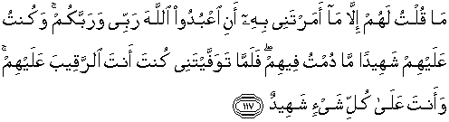 117. Aku tidak pernah mengatakan kepada mereka kecuali apa yang Engkau