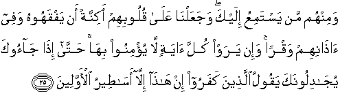25. Dan di antara mereka ada orang yang mendengarkani (bacaan)mu,