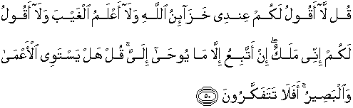 50. Katakanlah: Aku tidak mengatakan kepadamu, bahwa perbendaharaan