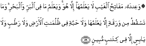 59. Dan pada sisi Allah-lah kunci-kunci semua yang ghaib; tidak ada