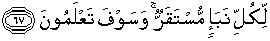 67. Untuk setiap berita (yang dibawa oleh rasul-rasul) ada (waktu) terjadinya dan kelak kamu akan mengetahui.