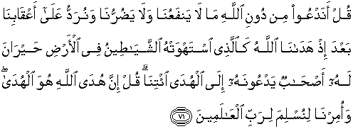 71. Katakanlah: "Apakah kita akan menyeru selain daripada Allah,