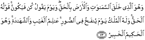 73. Dan Dialah yang menciptakan langit dan bumi dengan benar. Dan
