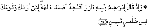 74. Dan (ingatlah) di waktu Ibrahim berkata kepada bapaknya,