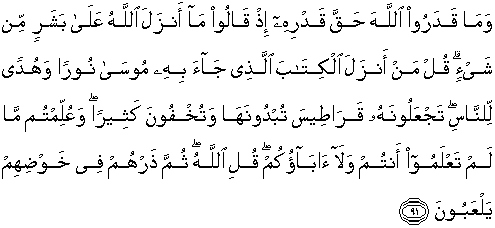 91. Dan mereka tidak menghormati Allah dengan penghormatan yang