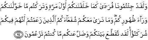 94. Dan sesungguhnya kamu datang kepada Kami sendiri-sendiri
