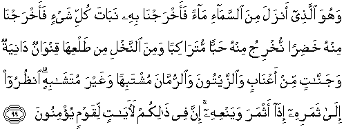 99. Dan Dialah yang menurunkan air hujan dari langit, lalu Kami