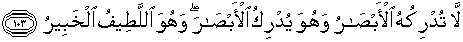 103. Dia tidak dapat dicapai oleh penglihatan mata, sedang Dia dapat melihat segala yang kelihatan; dan Dialah Yang Maha Halus lagi Maha Mengetahui.