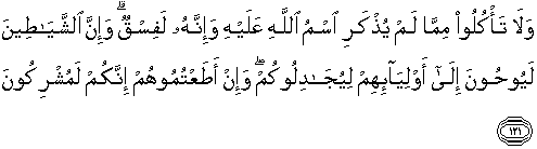121. Dan janganlah kamu memakan binatang-binatang yang tidak disebut
