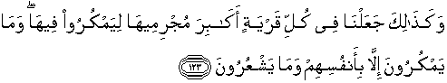 123. Dan demikianlah Kami adakan pada tiap-tiap negeri penjahat-penjahat yang terbesar agar mereka melakukan tipu daya dalam negeri itu. Dan mereka tidak memperdayakan melainkan dirinya sendiri, sedang mereka tidak menyadarinya.