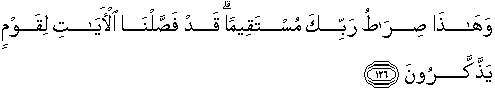 126. Dan inilah jalan Tuhanmu; (jalan) yang lurus. Sesungguhnya Kami telah menjelaskan ayat-ayat (Kami) kepada orang-orang yang mengambil pelajaran.