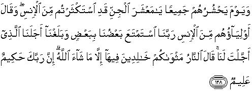128. Dan (ingatlah) hari diwaktu Allah menghimpunkan mereka semuanya (dan