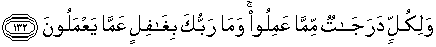 132. Dan masing-masing orang memperoleh derajat-derajat (seimbang) dengan apa yang dikerjakannya. Dan Tuhanmu tidak lengah dari apa yang mereka kerjakan.