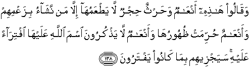 138. Dan mereka mengatakan[510]: "Inilah hewan ternak dan tanaman