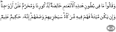 139. Dan mereka mengatakan: "Apa yang ada dalam perut binatang
