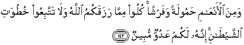 142. Dan di antara hewan ternak itu ada yang dijadikan untuk