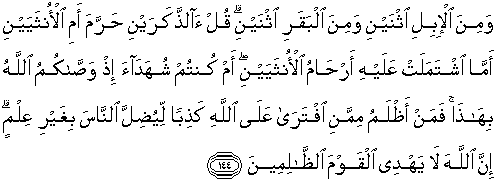 144. dan sepasang dari unta dan sepasang dari lembu. Katakanlah: