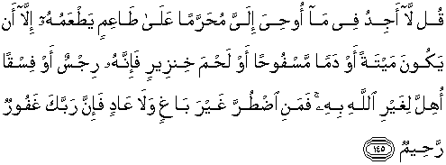 145. Katakanlah: "Tiadalah aku peroleh dalam wahyu yang diwahyukan