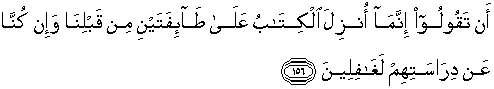 156. (Kami turunkan al-Quran itu) agar kamu (tidak) mengatakan: "Bahwa