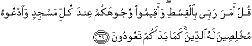 29. Katakanlah: "Tuhanku menyuruh menjalankan keadilan." Dan (katakanlah): "Luruskanlah muka (diri)mu[533] di setiap sembahyang dan