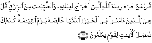 32. Katakanlah: "Siapakah yang mengharamkan perhiasan dari Allah
