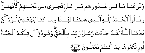43. Dan Kami cabut segala macam dendam yang berada di dalam dada