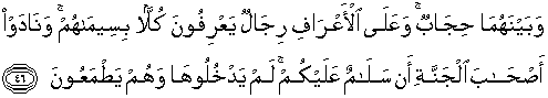 46. Dan di antara keduanya (penghuni surga dan neraka) ada batas;
