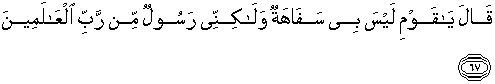 67. Hud herkata "Hai kaumku, tidak ada padaku kekurangan akal sedikitpun, tetapi aku ini adalah utusan dari Tuhan semesta alam.