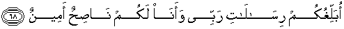 68. Aku menyampaikan amanat-amanat Tuhanku kepadamu dan aku hanyalah pemberi nasehat yang terpercaya bagimu."