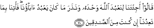 70. Mereka berkata: "Apakah kamu datang kepada kami, agar kami