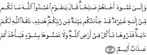 73. Dan (Kami telah mengutus) kepada kaum Tsamud saudara mereka