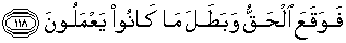 118. Karena itu nyatalah yang benar dan batallah yang selalu mereka kerjakan.