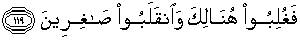 119. Maka mereka kalah di tempat itu dan jadilah mereka orang-orang yang hina.