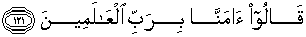121. Mereka berkata: "Kami beriman kepada Tuhan semesta alam,
