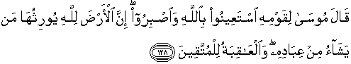 128. Musa berkata kepada kaumnya: "Mohonlah pertolongan kepada Allah