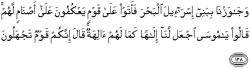 berhala mereka, Bani lsrail berkata: "Hai Musa. buatlah untuk kami