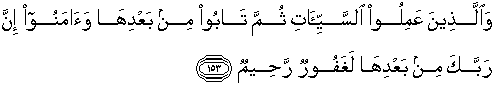 153. Orang-orang yang mengerjakan kejahatan, kemudian bertaubat sesudah itu dan beriman; sesungguhnya Tuhan kamu sesudah taubat yang disertai dengan iman itu adalah Maha Pengampun lagi Maha Penyayang.