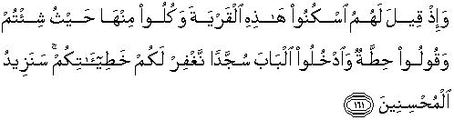 161. Dan (ingatlah), ketika dikatakan kepada mereka (Bani Israil):