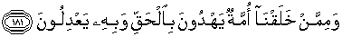 181. Dan di antara orang-orang yang Kami ciptakan ada umat yang memberi petunjuk dengan hak, dan dengan yang hak itu (pula) mereka menjalankan keadilan.